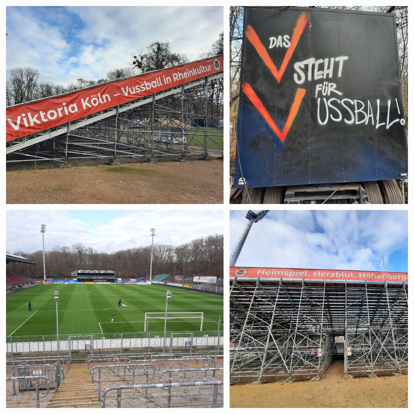 So reiste ich entspannt am Freitag Mittag an und schaute mir schnell noch vorm Einchecken im Hotel das leere Stadion von Victoria Köln, den Sportpark Höhenberg, an. Interessant zu sehen, welche Bedeutung das „V“ hat.