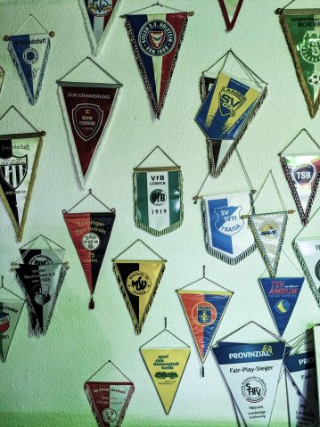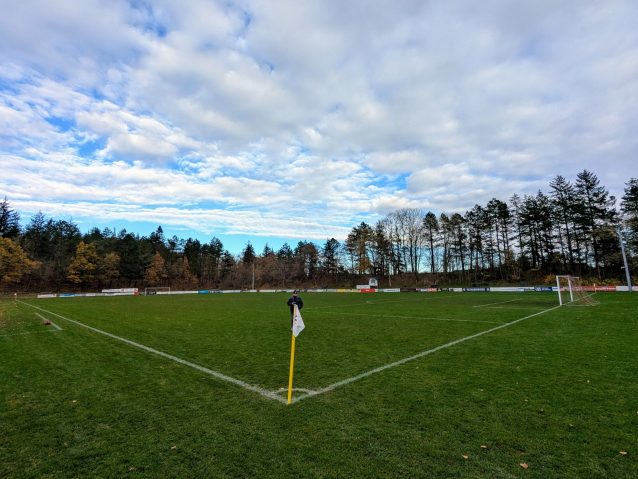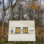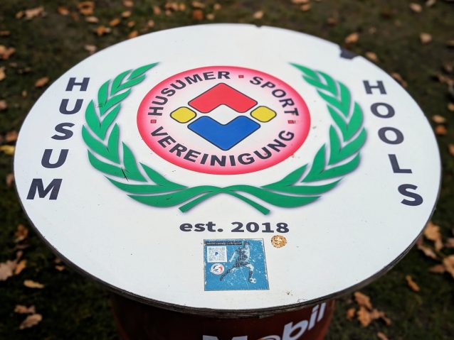 Das Friesenstadion, etwas außerhalb der 25.000 Einwohner zählenden Stadt Husum gelegen, ließ sich gut mit dem Bus erreichen, in dem wir die einzigen Reisenden waren und uns der freundliche Fahrer in astreinem Platt etwas über die Geschichte Husums erzählte… vermute ich zumindest. Die wunderschöne Sportanlage befindet sich in einem Waldgebiet, welches ob der friesisch kühlen Sonne in einem besonderen Glanz erstrahlte. Neben dem Hauptplatz (zum Glück mal kein Kunstrasen), befindet sich noch der etwas verwilderte Nebenplatz mit einer wunderbar analogen Anzeigetafel. Dieser wurde vor der Fusion von Frisia genutzt und ist jetzt der Hauptplatz von Husum 18 (siehe oben).